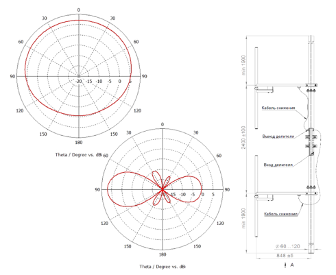 | Расстояние по вертикали между точками крепления диполей, мм | 2400±100 |